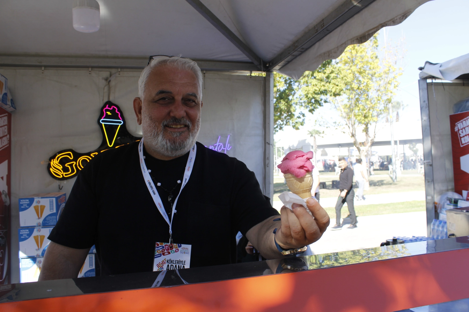 “Adana’ya özgü şalgamlı dondurma yaptık”Zafer Geyik, “Dünyada ilk defa şalgamlı dondurmayı yapan bir firmayız. Adanalılar şalgamı kebabın yanında, simitin yanında severek tüketiyor. Biz de daha sonra bunun dondurmasını yapmaya karar verdik. Adana’ya özgü şalgamlı dondurma yaptık. Bu katıldığımız 2. Festivalimiz yerli halkımıza, yurt dışından ve şehir dışından gelen misafirlere de şalgamlı dondurmayı tattırıyoruz. Çok da güzel tepkiler alıyoruz” diye ifade etti.