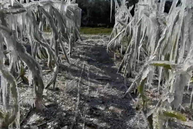 Adana'nın Kozan ilçesinde, tropikal meyve üretimiyle tanınan Acarmantaş Mahallesi'nde, çiftçi Mustafa Akçoban, beklenmedik soğuklarla karşılaştı. 3 dönüm alanda ejder meyvesi üreten Akçoban, gece boyunca ürünlerini korumak için yağmurlama sistemini çalıştırarak don olayından en az zararla kurtulmaya çalıştı. Ancak sabaha karşı hava sıcaklığının eksi 5 dereceye düşmesiyle, ürünlerde buz sarkıtları oluştu.
