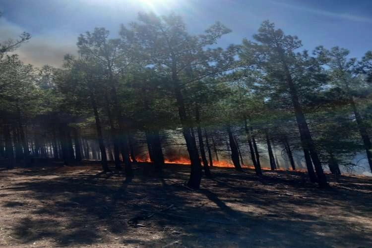 Topçular Mahallesi'ndeki ormanlık alanda henüz belirlenemeyen nedenle yangın çıktı.