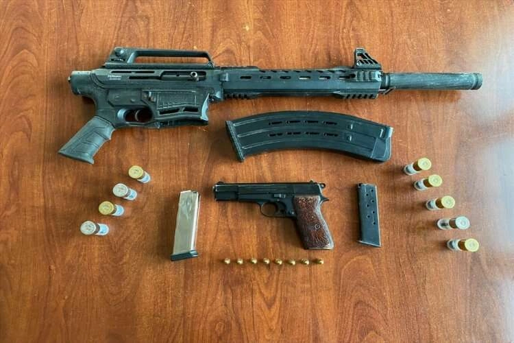 Adreste, el yapımı patlayıcı ile ruhsatsız tabanca ve pompalı tüfek, bu silahlara ait 3 şarjör ve 8 mermi ele geçirildi.