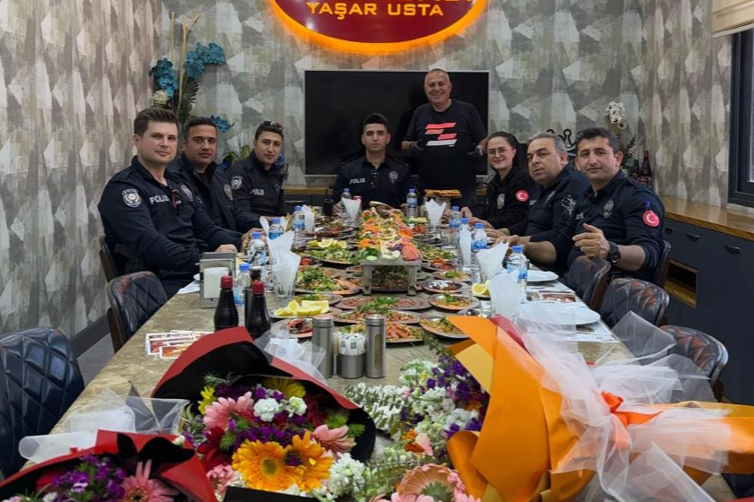 Adanalı kebapçı, ‘Kavga var’ diyerek çağırdığı polislere sürpriz yaparak polis haftalarını kutladı.Adana’nın Yüreğir ilçesinde kebapçılık yapan Yaşar Aydın, iş yerine yakın bölgede görevli karakol komiseri ile polislere sürpriz yapmak istedi. Aydın, 112 Acil Çağrı Merkezi’ni arayarak ‘Kaburgacı Yaşar’da kavga var. Ekip lazım’ diyerek yardım istedi. Kısa sürede olay yerine gelen polis ekipleri kapıda çiçeklerle karşılandı.