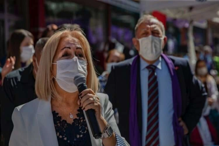 Başkan Akay ve Başkanvekili Bahadırlı, etkinlik alanındaki kadınlara karanfil ve Kadın Dayanışma Merkezi’nde kadınlar tarafından üretilen armağanları dağıtıp, kadın mücadelesini simgeleyen mor balonlar gökyüzüne bırakıldı.