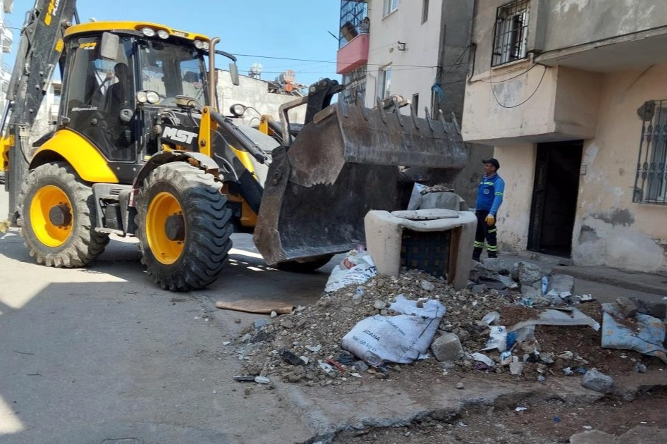 Cadde ve sokaklar yıkanıp toz ve kirden arındırıldıEkipler, yoğun çalışmanın ardından kir ve toz içindeki cadde, sokak ve kaldırımları da arazözden sıkılan tazyikli su ile yıkadı. Aynı çalışmada, Çevre koruma Müdürlüğüne ait çöp taksi de büyük araçların giremediği kimi sokak ve bölgede, çöp konteynerlerinin yanına dökülen molozları ve mobilya atıklarını toplayıp mahallelerden çıkardı.