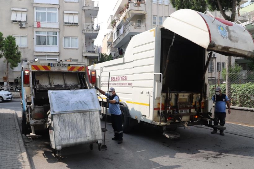 Mersin'in merkez ilçe Akdeniz Belediyesi Çevre Koruma ve Kontrol Müdürlüğü ekipleri, bir yandan 65 mahallede her gün tonlarca çöp ve atığı toplarken, yüzlerce çöp konteynırını da özel araç ve ekipman yardımıyla yıkayıp dezenfekte ediyor.