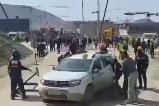 Cep telefonu ile görüntülenen o anlardan birinde, bazı işçilerin özellikle bir araca hem taşla hem de baretle vurmaları dikkat çekti.