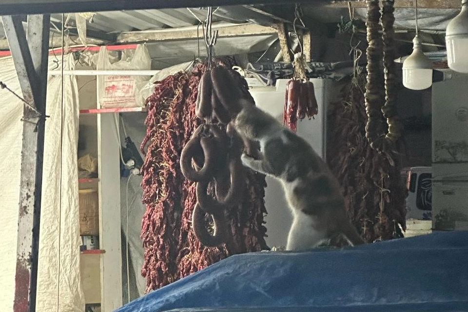 Kedi, tezgahta asılı sucuklardan yemeye başlayınca pazardaki vatandaşların ve esnafın dikkatini çekti. Görenlerin şaşkınlıkla izlediği kedi, kimseye aldırmadan karnını doyurdu. Bu sevimli ve sıra dışı anlar ise pazarda bulunan bir kişi tarafından cep telefonu kamerasıyla kaydedildi.