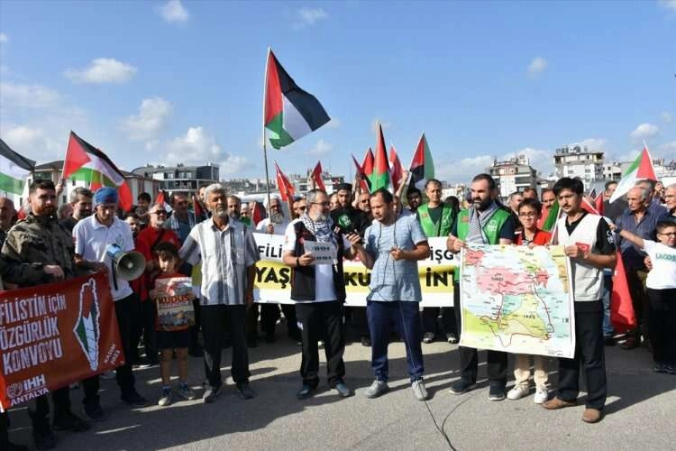 Antalya İHH Şube Başkanı Mehmet Yıldırım, gazetecilere yaptığı açıklamada, Filistin'in günlerdir bombardıman altında olduğunu ve binlerce insanın hayatını kaybettiğini söyledi.