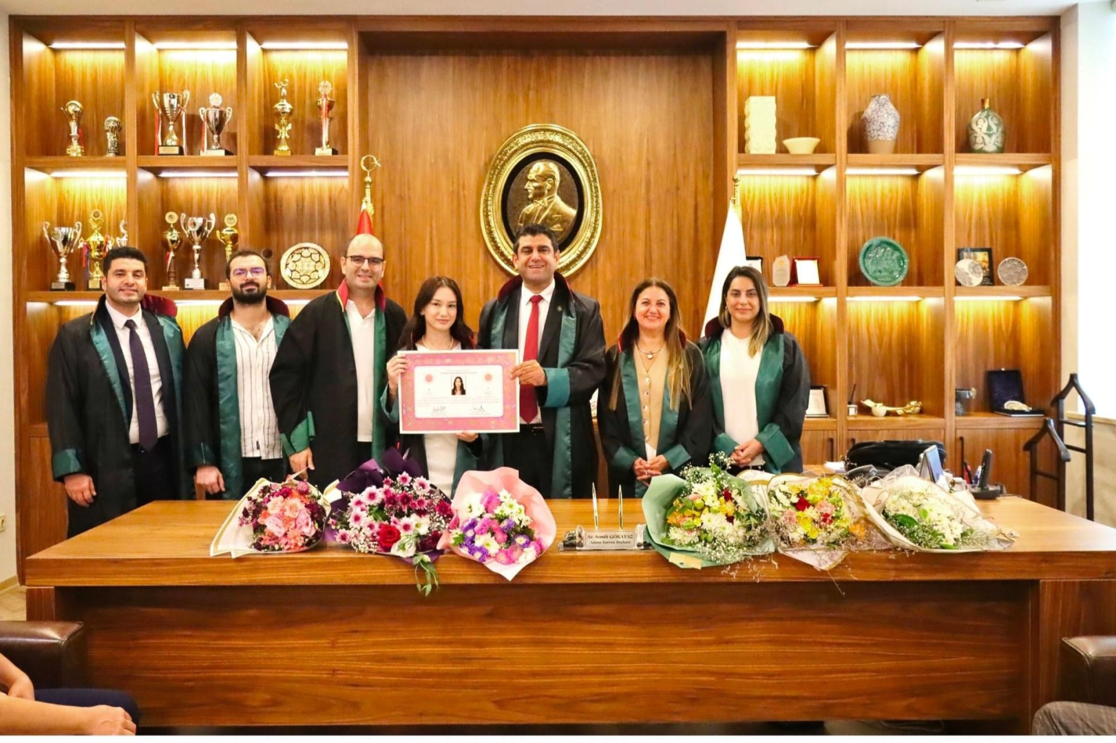 Adana Barosu’nda staj dönemlerini başarıyla tamamlayan yeni avukatlar için düzenlenen ruhsat töreni, Baro Başkanı Av. Semih Gökayaz’ın önderliğinde gerçekleşti. Fatıma Kübra Baz, Musa Eren Erbil, Zeynep Düldül, Yiğit Ayabakan, Bora Şener, Ferhat Metin ve Aslı Akbulut’un avukatlık ruhsatlarını aldığı törene, baro yönetimi, avukatlar, aileler ve davetliler katıldı. Törende konuşan Baro Başkanı Gökayaz, avukatlığın bir mücadele mesleği olduğuna vurgu yaparak, meslektaşlarına cesaret ve kararlılıkla bu yolda devam etmeleri yönünde tavsiyelerde bulundu.