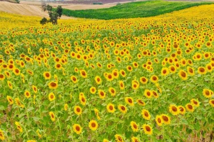 Ekonomik değeri en yüksek olan bitkilerden olan ayçiçeği, dünyanın birçok ülkesinde olduğu gibi Türkiye’de de tarımsal üretimde önemli yer tutuyor. Rusya-Ukrayna savaşıyla önemi daha da artan ayçiçeği, sarı renkli çiçeklerini açmasıyla tarlaları adeta sarıya boyuyor.