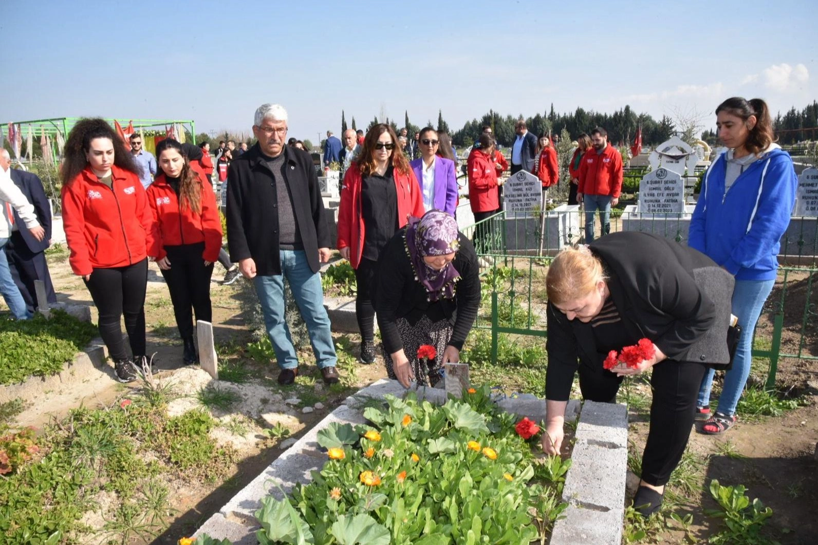 Başkan Hülya Erdem, Ceyhan Yeni Mezarlığı'nda düzenlenen anma töreninde acılı ailelerle bir araya geldi. Onlar için dua eden Erdem, yitirilen tüm canlara bir kez daha Allah'tan rahmet dilerken, yakınlarına ve tüm Türkiye'ye sabır ve baş sağlığı dileğinde bulundu.