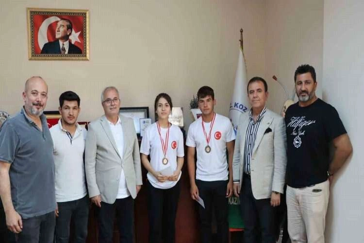 Sakarya’da düzenlenen Türkiye Boks Şampiyonasında Yıldız bayan ve erkeklerde Adana Kozanlı boksörler Türkiye 3’üncüsü oldu. Şampiyonaya katılan sporculardan Buket Yılmaz ve Samet İpek, antrönerleri Fatih Öztürk, Serkan Alyagut ile Kozan Belediye Başkanı Kazım Özgan’ı ziyaret etti.