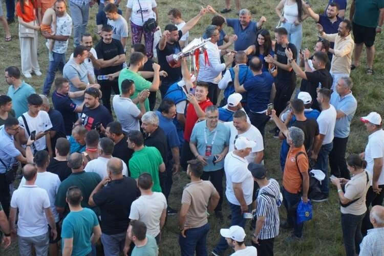 EDİRNE (AA) - 662. Tarihi Kırkpınar Yağlı Güreşleri başpehlivanı olan Yusuf Can Zeybek ve taraftarları, elde edilen zaferi er meydanında davul zurna eşliğinde dans ederek kutladı.