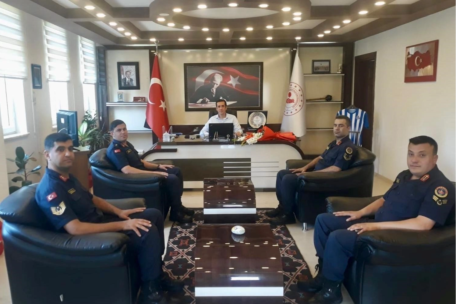 Jandarma Teşkilatı'nın 185'inci kuruluş yıl dönümü dolayısıyla Bozyazı İlçe Jandarma Komutanı Üsteğmen Yunus Güven ve beraberindekiler, Kaymakam Tuncay Topsakaloğlu’nu ziyaret etti.