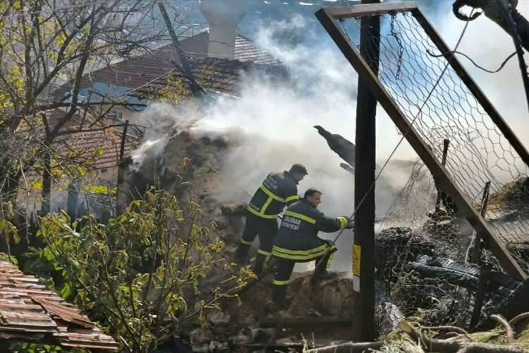 Ev ve ağıla sıçrayan yangını fark edenler durumu itfaiyeye bildirdi.