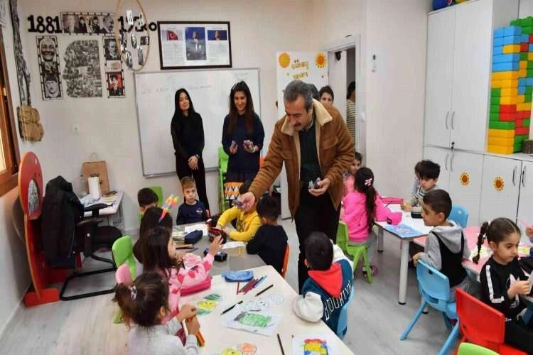 Çetin, bir süre çocuklarla sohbet ederek, onların oyununa katıldı. Çocuklarla keyifli zaman geçiren Çetin, onlardan anne babalarını üzmemelerini istedi. Başkan Çetin, kreş ziyaretinde çocuklarla hatıra fotoğrafı çektirmeyi ihmal etmedi.