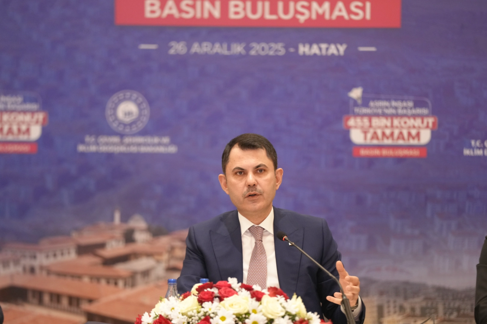 Çevre, Şehircilik ve İklim Değişikliği Bakanı Murat Kurum, 27 Aralık Cumartesi günü Cumhurbaşkanı Recep Tayyip Erdoğan'ın teşrifleriyle gerçekleştirilecek 455 bininci afet konutunun teslim töreni öncesinde Hatay'da medya temsilcileriyle bir araya geldi. Tamamlanan inşa faaliyetlerini görseller eşliğinde anlatan Bakan Kurum, sürecin perde arkasındaki dev ekibin emeğine dikkat çekti.