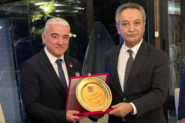 Başkan Karslıoğlu, Çakın ve Yönetim Kurulu üyelerine; Prof.Dr. Haleddin İbrahimli’nin ABD-ÇİN Küresel Rekabeti ve Yakın Geleceği Etkileri’ni ele alan ‘DEVLERİN SAVAŞI’ başlıklı kitabını hediye etti.