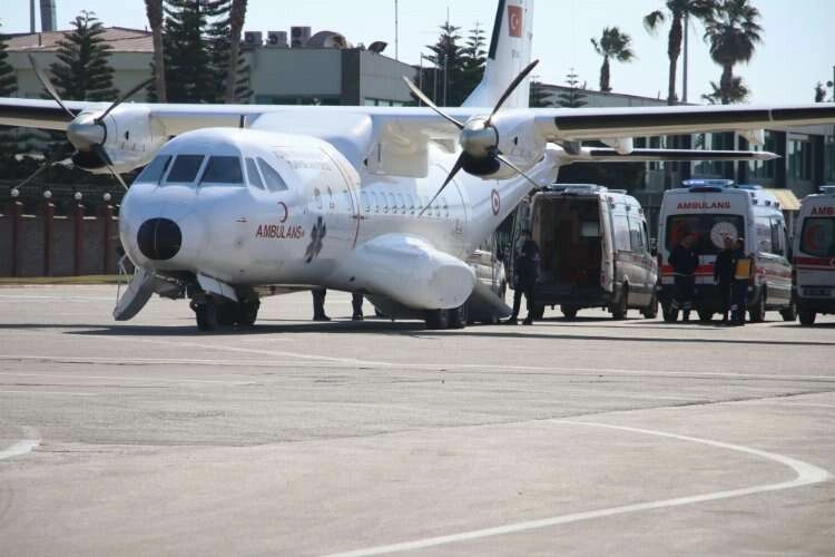 Adana'daki hastanelere getirilip durumları değerlendirilen yaralıların hava yoluyla başka illere nakli sürüyor. Bu kapsamda aralarında kadın, bebek ve çocukların da bulunduğu 62 kişi, ambulanslarla Adana Havalimanı'na getirildi.