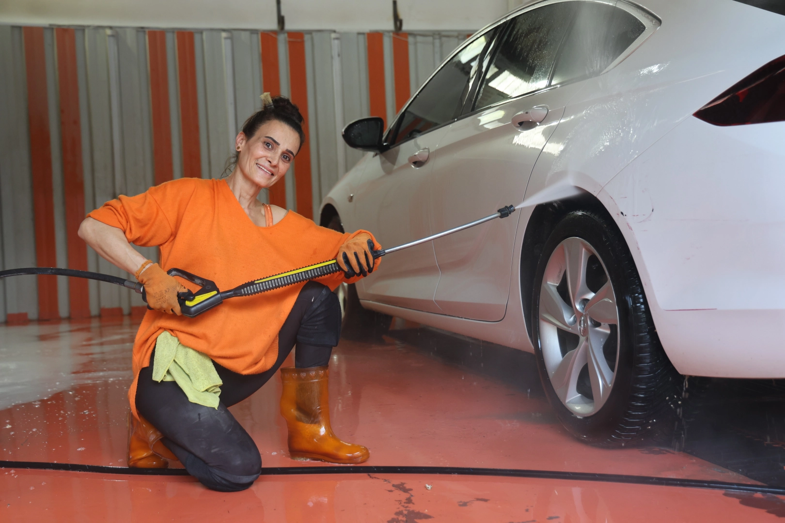 Antakya ilçesinde yaşayan 44 yaşındaki Gülcan Kırk, kendi işini kurma hayaliyle 2019 yılında oto yıkamacı açtı. Depreme kadar Kuzeytepe Mahallesi’nde ilk açtığı iş yerinde yıkamacılık yapan Kırk’ın iş yeri asrın felaketinde yıkıldı. Depremin ardından 8 ay ara veren ve ardından Ekinci Mahallesi’nde yeni iş yerini açan Kırk, mesleğini kaldığı yerden devam ettirmeye başladı. Oto yıkamasını il açtığında ‘yapamazsın’ diyenlerin söylemlerine ve kendisine zaman zaman ‘abi’ diyerek hitap eden müşterilerinin bakış açısına rağmen mesleğini sürdürmekten vazgeçmeyen Kırk, 6 yıldır araç yıkayarak ekmek parasını kazanmaya devam ediyor.