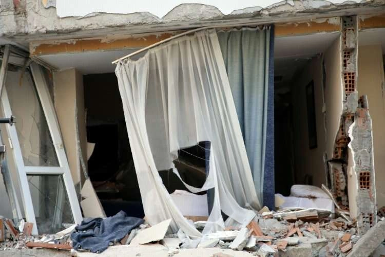 Mustafa Kemal, Pınarbaşı ve Meydan mahalleleri gibi yıkımın fazla olduğu bölgelerdeki binalardan sarkan perdeler dikkati çekiyor.