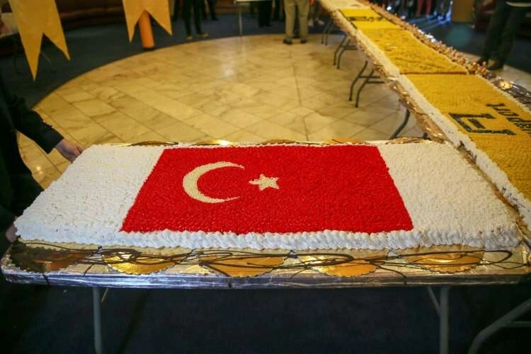 Her gün konuklar için farklı etkinliklerin yapıldığı gemide bu kez de çocuklar için pasta hazırlandı. Türk ve İtalyan bayraklarının yer aldığı 15 metrelik pasta çocukların alkışlarıyla kesilerek ikram edildi.