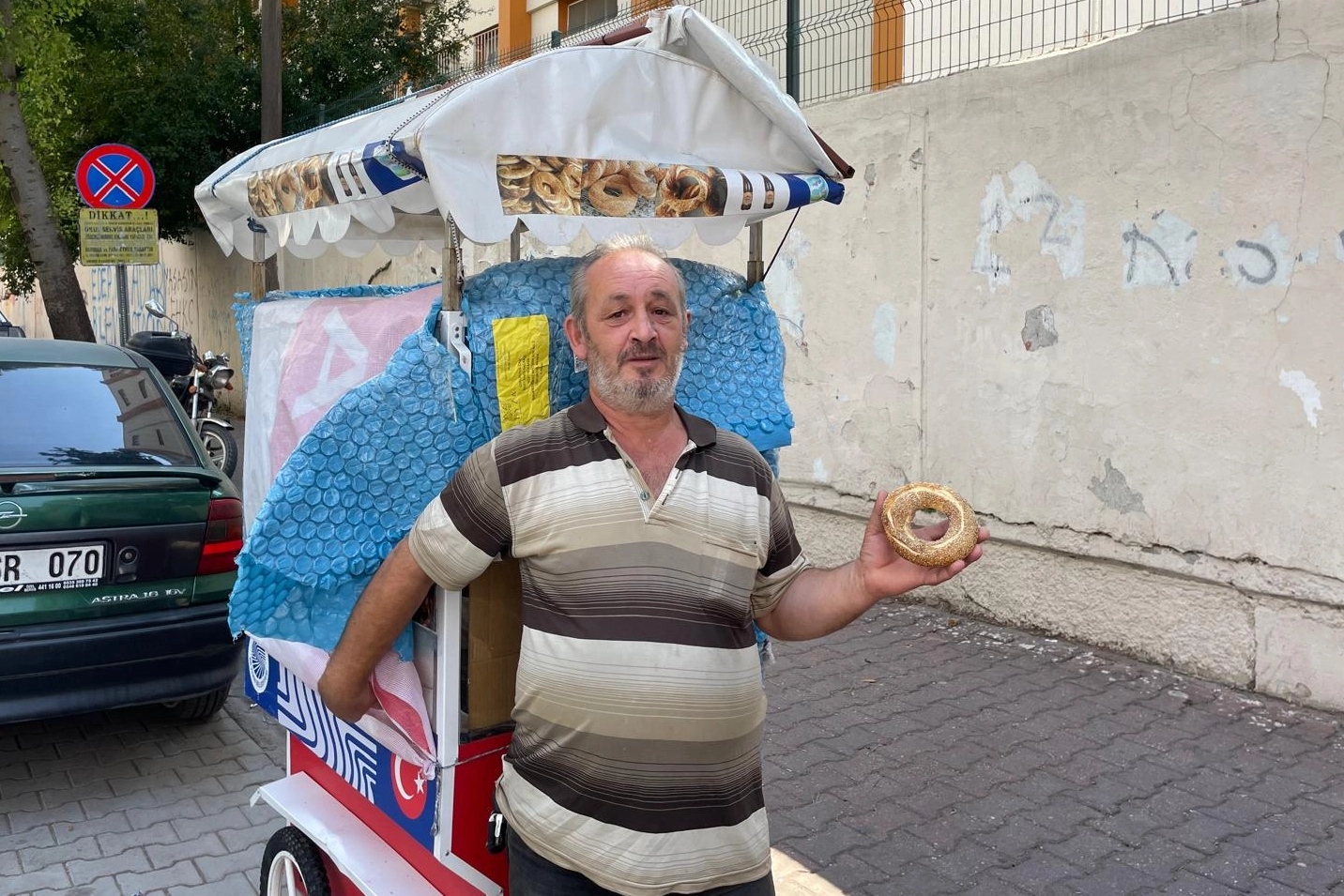 Mecit Aral, “2 senedir Adana’nın meşhur döşeme simidini satıyorum. Bu simit insanın midesine dokunmuyor. Ana malzemesi nohut unu. Simitin hamuru pişirilirken odun ateşinde pişirilir bu da diğer simitlerden farkını ortaya koyuyor. Döşeme simiti sadece Adana’da bulunuyor. Döşeme simidi aslında Çifte minarenin yakınlarında pişiyor oradan da oradan bizlere satmamız için dağıtılıyor. Tanesini 10 TL’den satıyorum. Sırf döşeme simidi almak için sabahları tezgaha gelenler var” diye ifade etti.