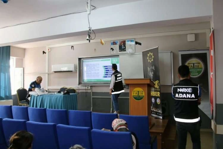 ADANA (İLKHABER)-Kozan İlçe Emniyet Müdürlüğü Toplum Destekli Polislik Büro Amirliği, “Bilinçli Aile Güvenli Gelecek Projesi” dolayısıyla Fatih Anadolu Lisesi'nde uyuşturucu ile mücadele semineri düzenledi. Seminerde, narkotik büro amirliğinde görevli polisler, öğrencilere ve velilere uyuşturucu madde kullanımının zararları ve bağımlılık döngüsü hakkında bilgi verdi. Seminerde yapılan konuşmalarda, uyuşturucu madde kullanımının fiziksel, zihinsel ve psikolojik olarak birçok zararı olduğu vurgulandı. Bağımlılığın ilk denemeden sonra kontrol kaybına ve bağımlılık döngüsünün başlamasına neden olabileceği belirtildi. Erken fark edilen ve müdahale edilen bağımlığın yaşamları kurtarabileceği ve birçok ölümcül hastalık riskini azaltabileceği ifade edildi. Uyuşturucu bağımlılığının hem fiziksel hem de ekonomik açıdan toplumlara zarar verdiği ve terör örgütleri gibi suç kartellerine finansal destek sağladığı kaydedildi. Uyuşturucu ticareti ile karşılaşıldığında, yetkililere bilgi verilmesinin önemine dikkat çekildi. Uyuşturucu ile mücadele uygulamalarına vatandaşların destek vermesinin bu sorunun azaltılmasına yardımcı olabileceği vurgulandı. Seminerin sonunda öğrencilere ve velilere uyuşturucu ile mücadeleye yönelik broşürler dağıtıldı.