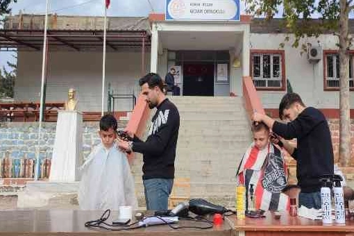 Proje kapsamında berber ve kuaförlerden oluşan ekip, kırsal mahalledeki okullarda eğitim gören öğrencilerin bayram öncesi saç tıraşlarını yaptı.Vakıf Müdürü Fatih Akça, yaptığı açıklamada, projeyle kırsal mahalledeki öğrencilerin saç kesimlerini yaptıklarını ve onlarla bayramlaştıklarını belirtti.