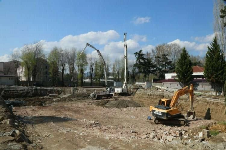 Depreme dayanıksız olduğu belirlenerek yıkılan ve yeniden yapımına başlanan Gölcük Hükümet Konağı’nda çalışmalar sürüyor.