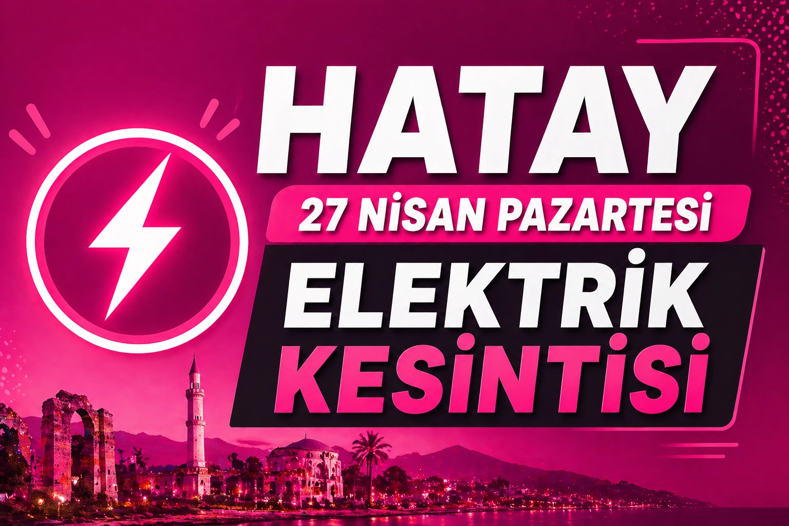 Hatay’da 27 Nisan Pazartesi günü uygulanacak planlı elektrik kesintileri, kent genelinde günlük yaşamı etkileyecek. Enerji dağıtım şirketi tarafından yapılan açıklamaya göre, altyapı yenileme ve bakım çalışmaları kapsamında bazı mahallelerde geçici süreli enerji kesintileri olacak.
