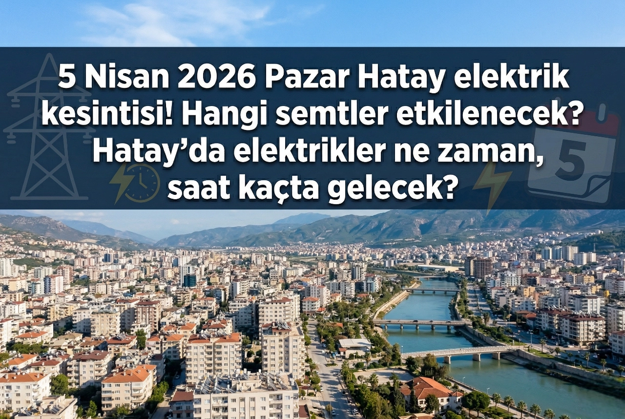 Son dakika Hatay haberleri... Toroslar Elektrik Dağıtım A.Ş. (Toroslar EDAŞ), 5 Nisan 2026 Pazar günü için Hatay'da yaşanacak kesintileri resmi sitesinden duyurdu. Peki, Hatay'da hangi ilçelerde elektrik kesintileri yaşanacak? Hatay'da elektrikler ne zaman gelecek? Hatay'da elektrik kesintisinden hangi ilçeler etkilenecek? İşte detaylar...
