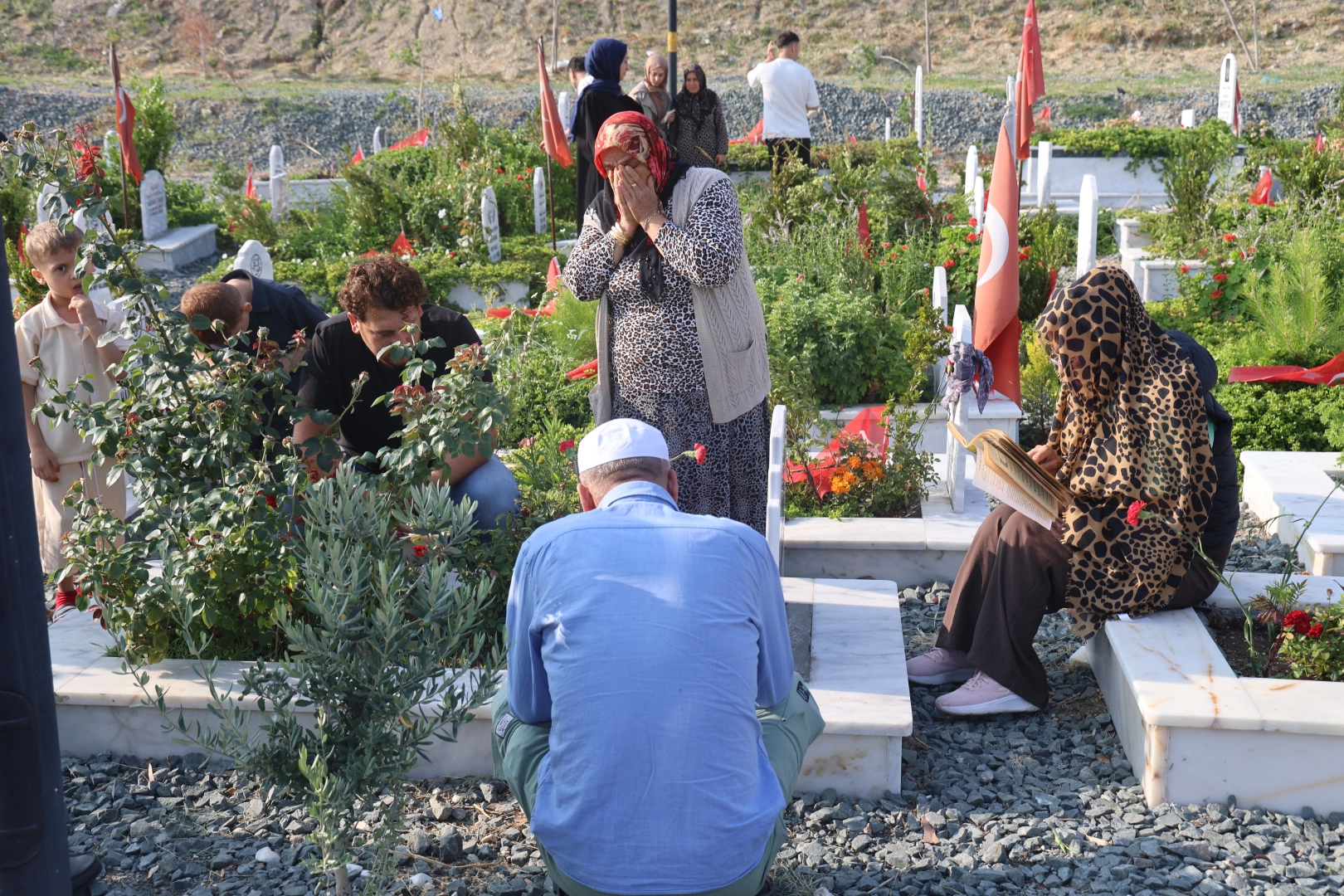 Hatay'ın merkez Antakya ilçesinde hüzünlü geçen Kurban Bayramı'nda depremde hayatını kaybedenlerin mezarlarına karanfil bırakılarak, dualar edildi.