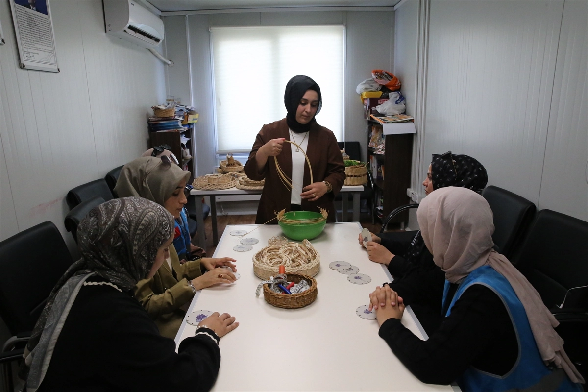 Depremzede kadınların bu tür sosyal etkinliklere ihtiyaç duyduğunu anlatan Ceren, "Burada rattan örme (hasır dokuma), ahşap ve mum boyama, çanta yapma gibi çalışmalar yapıyoruz. Öğrencilerimiz burada ürettikleri malzemeleri evlerine götürebiliyor, isterlerse kullanabiliyor ya da satabiliyorlar. Bu sayede gelir elde edebiliyorlar." diye konuştu.