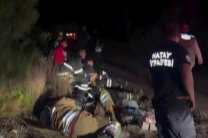 Hatay'ın Dörtyol ilçesinde dün öğle saatlerinde başlayan ve rüzgarın etkisiyle geniş bir alana yayılan orman yangınıyla mücadele, zorlu şartlar altında devam ediyor. Yangın söndürme çalışmalarına katılan itfaiye ve orman ekiplerinin, verdikleri insanüstü mücadelenin ardından yorgunluktan yere uzandıkları anlar, vatandaşlar tarafından görüntülendi.