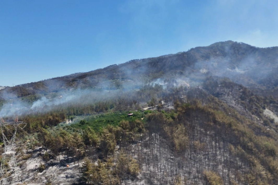 Yangının etkili olduğu bölge, dronla havadan görüntülendi. Görüntülerde, geniş bir ormanlık alanın zarar gördüğü dikkat çekti. Ekiplerin bölgede soğutma çalışmalarını sürdürdüğü bildirildi.