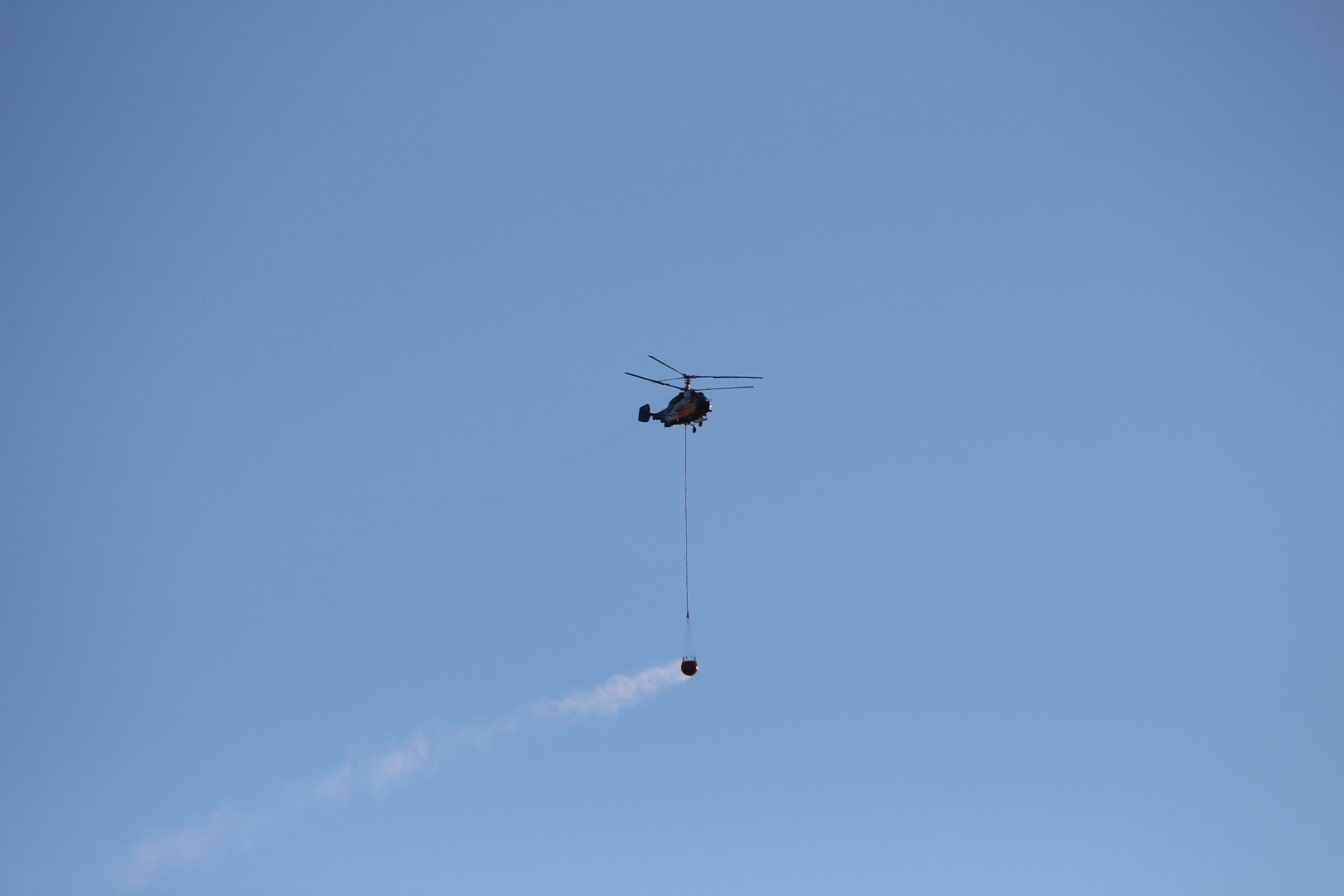 SABAH SAATLERİNDE HAVADAN MÜDAHALE YENİDEN BAŞLADIGünün ilk ışıklarıyla birlikte söndürme çalışmalarına havadan yeniden başlandı. Helikopterlerin yanı sıra ekipler karadan da çalışmalarını sürdürdü.