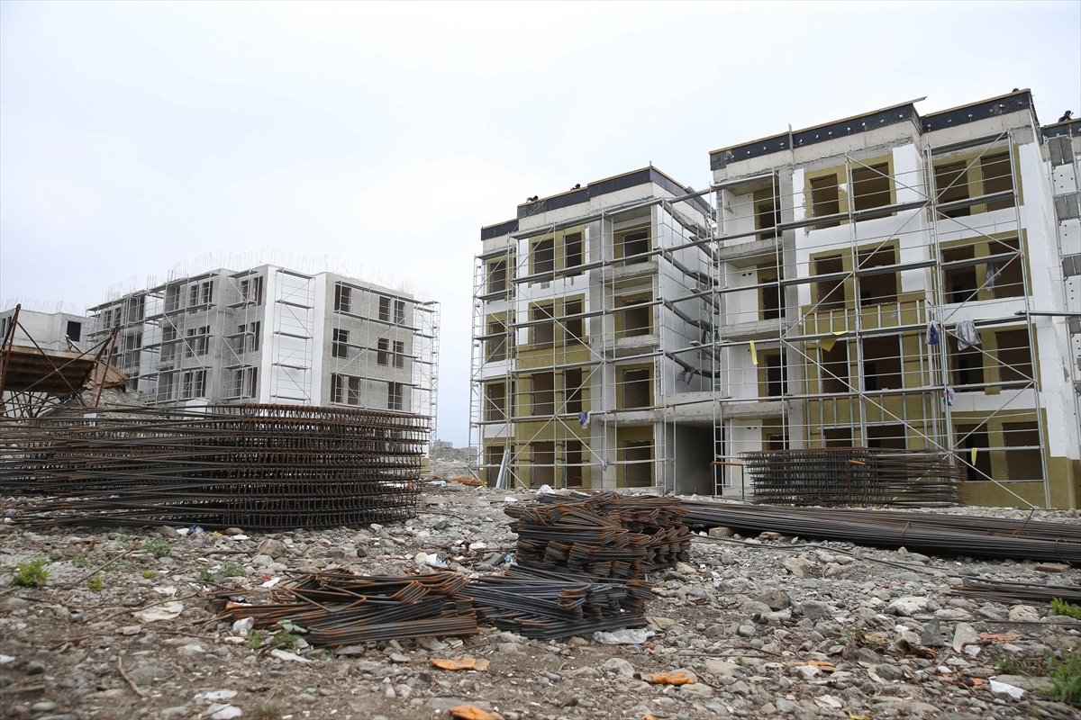 Hatay'ın Erzin ilçesinde 6 Şubat 2023'teki depremlerden etkilenenler için yapımına başlanan 488 kalıcı konutun inşası sürüyor.