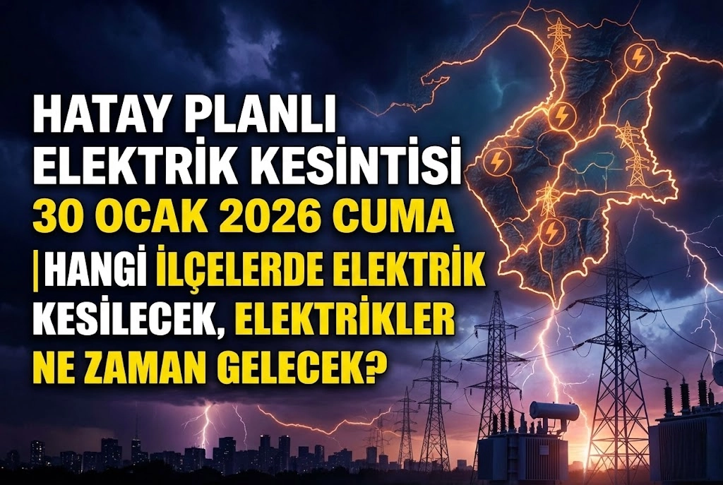 Hatay’da 30 Ocak 2026 Cuma günü planlı bakım, onarım, arıza ve altyapı iyileştirme çalışmaları kapsamında birçok ilçede elektrik kesintisi yaşanacak. Toroslar EDAŞ tarafından yürütülecek çalışmalar nedeniyle kesintiler bazı bölgelerde gece yarısından itibaren başlarken, bazı mahallelerde akşam saatlerine kadar sürecek. İşte Hatay elektrik kesintisi'nden etkilenecek ilçe ve mahalleler ile kesinti saatleri…
