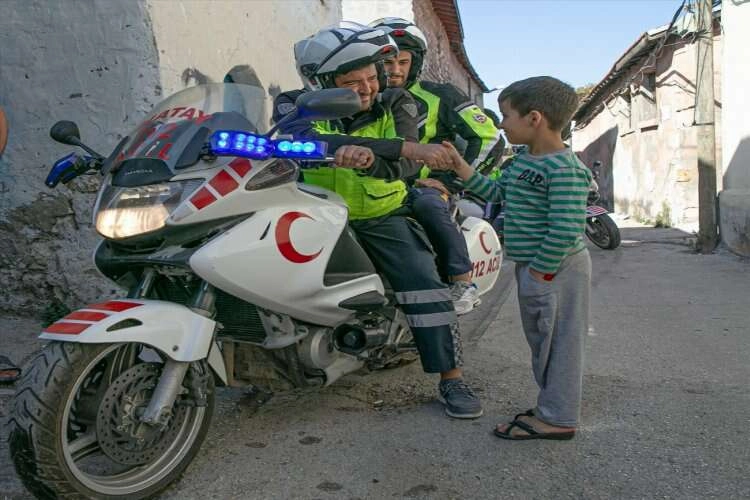 "Eski Antakya evlerinin bulunduğu dar sokaklar büyük ambulanslarımızın girmesine olanak sağlamıyor. Bu tür durumlarda motorize ekiplerimiz devreye giriyor. Bölgede acil bir vakaya ulaşmak çok zor. Bazen araç park edilmesi nedeniyle ambulanslar hareket edemiyor. Vaka anonsu geldiğinde diğer ambulanslarımızdan daha hızlı hareket ettikleri ve sokaklardan rahat geçebildikleri için ilk müdahaleyi motorize ekiplerimiz yapıyor. Trafiğin durumuna göre vakalara 3-5 dakika gibi bir sürede müdahale ediliyor. Ambulansımız gelene kadar motorize ekiplerimiz vakaya ilk müdahalesini yapmış oluyor."