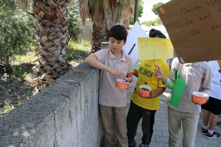 Şükrü Paşa Mahallesi'nde Zekiye Cavidan İlkokulu 3-C sınıfındaki 30 öğrenci, sahipsiz hayvanlara destek olmak için neler yapılacağına dair sınıf öğretmeni Bilal Polat ile görüştü.