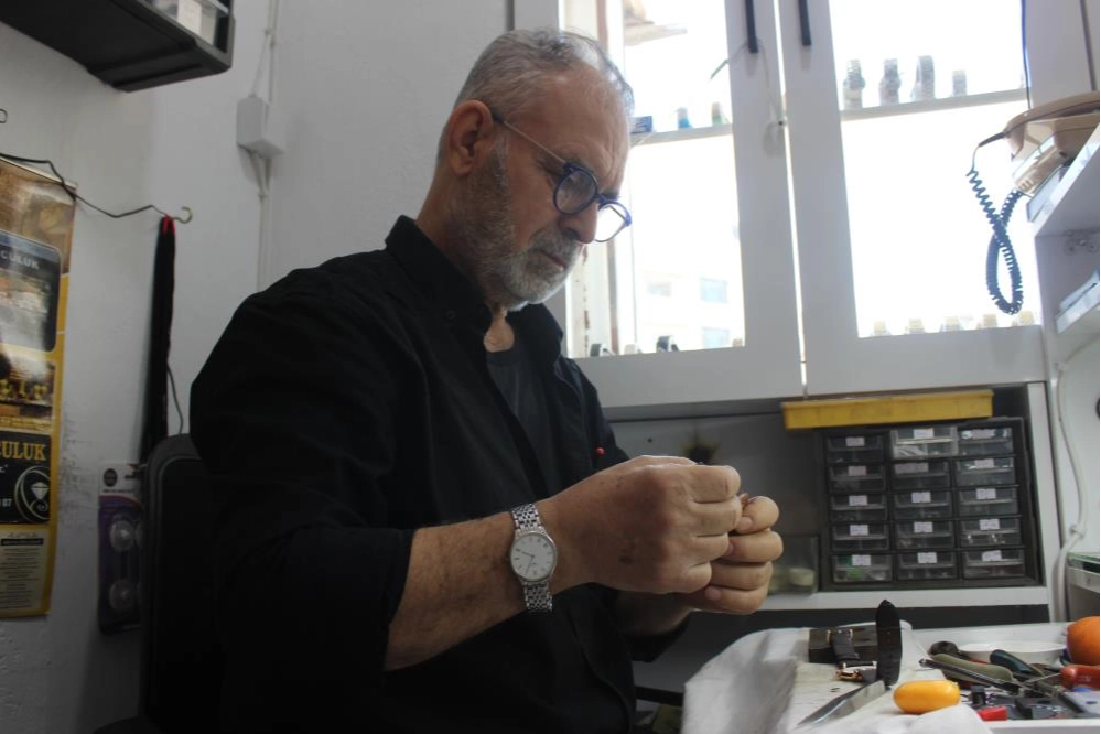 Hatay'ın Reyhanlı ilçesinde saat tamirciliği yaparak 50 yıldır geçimini sağlayan ve mesleği sayesinde 3 evladını okutan Selahattin Solhan, ilk işe başladığı günden beri işe bisikletiyle gidip geliyor.