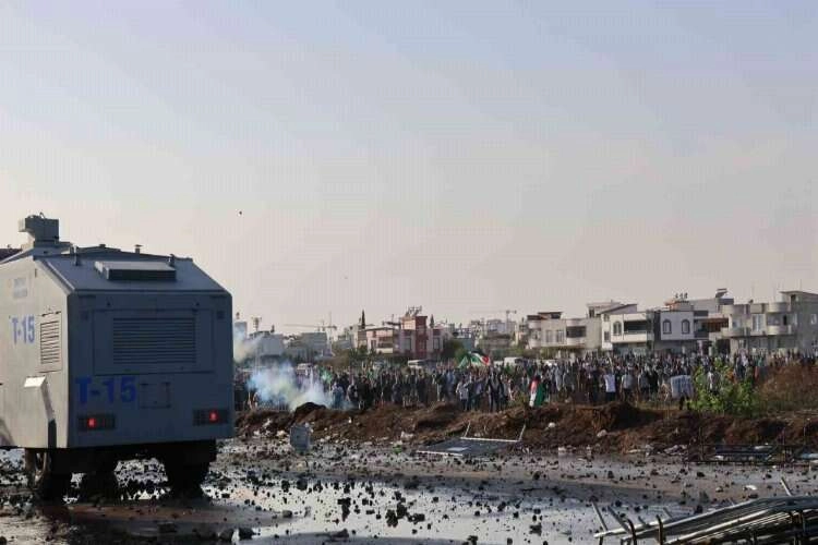 Türkiye genelinde toplanan gruplar, öğle saatlerinde İsrail’in Filistin’e saldırılarını ve İsrail’e destek veren ABD’yi protesto etmek üzere İncirlik Üssü’ne geldi. Emniyet ekiplerinin İncirlik Üssü’nün arka tarafındaki Sezai Karakoç Bulvarı’nda eylem yapmalarına izin verdiği kalabalıktan bir grup, polisin bariyerlerini aşıp askeri bölgeye girmek istedi. Bunun üzerine polis, TOMA ile su ve biber gazı sıkarak müdahale ettiği grubu askeri bölgeden uzaklaştırdı. Ancak grup bir süre sonra tekrar askeri üsse girmek isteyince polis, bu kez 5 TOMA ile gruba müdahale etti. Çevik kuvvet ekiplerinin de biber gazı ile müdahale ettiği gruptan bazı kişilerin polise taş attığı görüldü. Buna rağmen grup geri adım atmayınca askerler de bölgeye sevk edildi. Üsse giremeyeceğini anlayan şahıslar polis midibüsüne zarar vererek, üs etrafındaki tarlaları ateşe verdi. Polisin ve askerin müdahalesiyle grup dağıldı. Yangını ise ekipler müdahale ederek söndürdü.