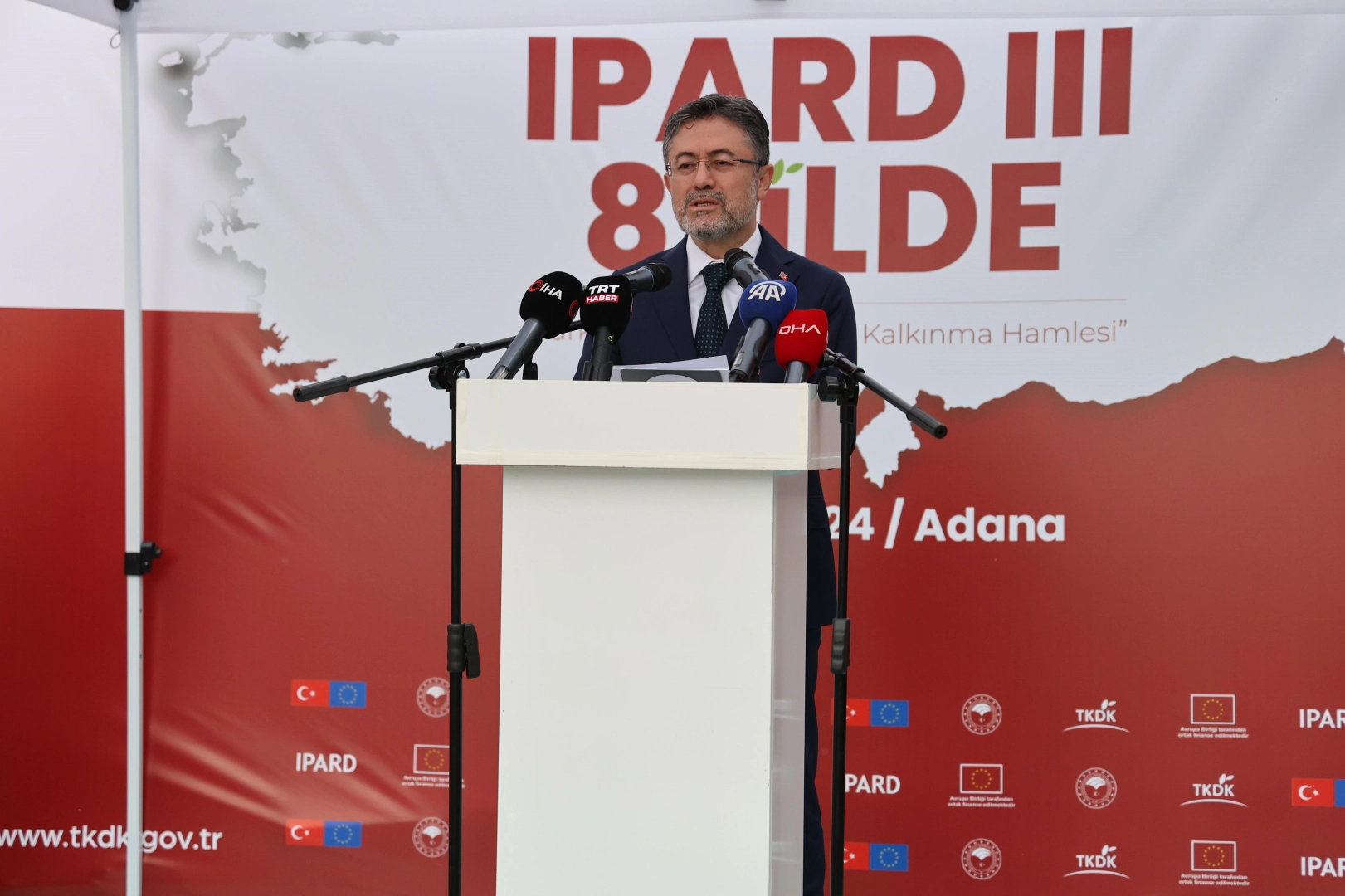 2024 yılından itibaren 7 yıl süreyle uygulanacak olan IPARD-3 programı ile önceki IPARD programlarında gösterilen başarının ileriye taşınacağını kaydeden Bakan Yumaklı, “IPARD-3 ile vereceğimiz toplam 785 milyon avro hibe ile tarım ve gıda sektörlerimize yeni yatırımlar kazandırarak, kırsaldaki insanımıza iş imkanları oluşturmayı hedefliyoruz. Bu dönemin en büyük yeniliği, bugüne kadar 42 ilimizde kullandırdığımız bu destekleri, bundan böyle 81 ilimizde yatırımcılarımızla ve çiftçilerimizle buluşturacak olmamızdır. TKDK, IPARD programının ilk defa uygulanacağı illerimizde irtibat ofislerini açtı ve bu ofislerde personelimiz görevlerine başladı. Böylece Trakya Bölgesi'ndeki çiftçilerimiz ilk defa IPARD destekleri ile buluşturulacak; Adana, İzmir, Antalya, Gaziantep, Kayseri gibi illerimiz tarım sektöründeki potansiyellerini kullanmak ve ihracatlarını artırmak için yepyeni bir desteğe kavuşacaklardır. IPARD-3 programının 66 milyon avro bütçesi var. ‘Tarım ve Balıkçılık Ürünlerinin İşlenmesi ve Pazarlanması Tedbiri’ için online olarak alınan başvurular çarşamba günü itibarıyla tamamlandı. Bu çerçevede alınan başvuru sayısını ilk kez burada açıklamak isterim. IPARD-3 programının 1’inci başvuru çağrı ilanı çerçevesinde ülke genelinde toplam bin 79 proje başvurusu yapıldı. IPARD- 3’ten destek alacak yeni illerimiz arasında Adana’nın en çok proje başvurusu yapılan 4’üncü ilimiz olduğunu özellikle vurgulamak istiyorum” dedi. Programa Adana Valisi Yavuz Selim Köşger, AB Büyükelçisi ve Avrupa Birliği Türkiye Delegasyonu Başkanı Nikolaus Meyer Landrut, IPARD Ajansı Başkanı Ahmet Antalyalı ve protokol üyeleri katıldı. Bakan Yumaklı, konuşmanın ardından çiftlikte incelemelerde bulundu.