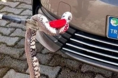 Akarca Mahallesi'ndeki müstakil evinin merdiven boşluğuna yılan girdiğini gören vatandaş, durumu 112 Acil Çağrı Merkezine bildirdi.