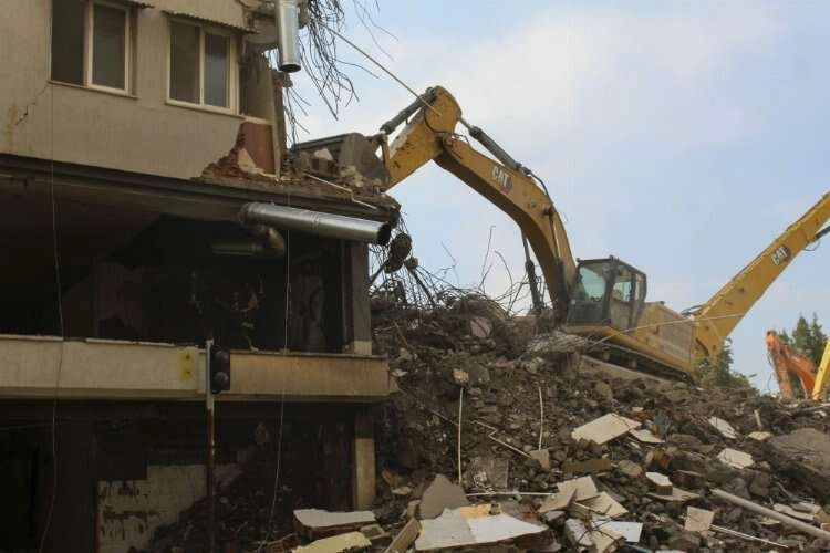 HATAY (İLKHABER) -Depremlerde ağır hasar alan Pınarbaşı Mahallesi'nde bulunan 6 katlı bina, güvenlik önlemlerinin ardından iş makineleriyle kontrollü şekilde yıkılıyor.
