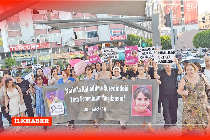 Sık sık, 'Narin için adalet, herkes için adalet, Narin'in hesabı sorulacak' sloganları atılan eylemde Adana Kadın Platformu adına açıklama yapan SES Adana Şubesi Başkanı Belgin Işık, şiddetin ailenin dört duvarı içerinde gizlenmek istendiğini belirterek, "Artık yeter cezasızlık politikalarından vazgeçin, hukuku işletin. Hukuk devreye girene, kadın katliamları ve çocuk istismarı son bulana kadar mücadelemizden vazgeçmeyeceğiz. Narin'in katledilmesi sürecindeki bütün sorumlular ortaya çıkarılana, en ağır cezayı alana kadar ve çocuklarımızın güvenle yaşayacağı ortamlar yaratılana kadar mücadelemizi sürdüreceğiz" dedi.