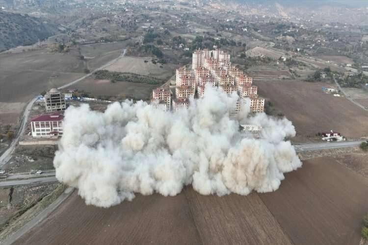 Gerekli önlemlerin ardından verilen komutla kapsüller patlatılarak binalar yıkıldı.