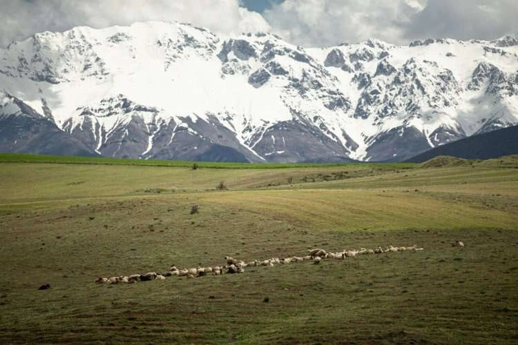 Yüksek kesimleri kısmen beyaza bürünen Berit Dağı'nın eteklerinde baharda açan çiçekler ve yeşil örtü güzel görüntüler oluşturdu.