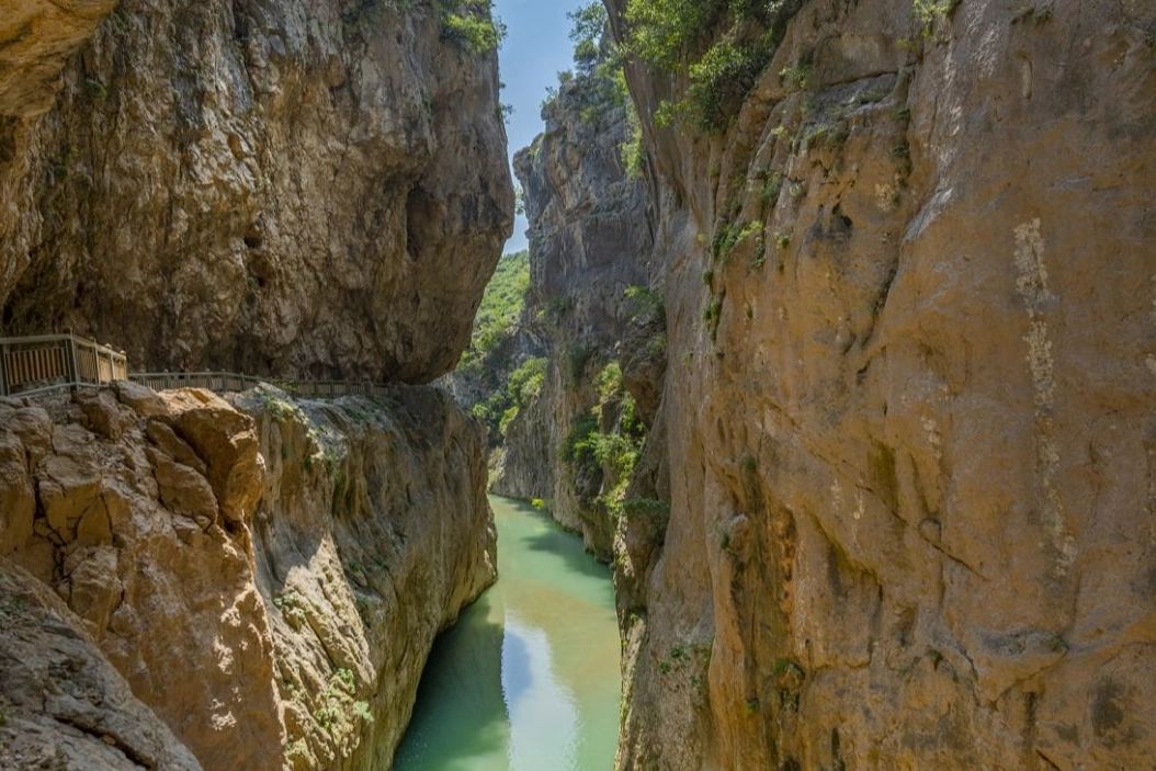 Kanyon boyunca ilerlerken, yamaçlar birbirine o kadar yaklaşır ki bazen gökyüzünü görmek mümkün olmayabilir ve zamanın akışını unutabilirsiniz. Yeşilin her tonunun görüldüğü kanyonda keçiboynuzu, zakkum, çınar ve zeytin ağaçları gibi çeşitli bitki örtüsü bulunmaktadır.