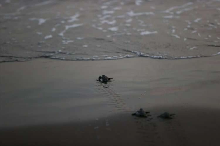 Kumun altındaki yuvalarında kuluçka dönemini tamamlayan yavrular, yumurtalarından çıkarak mavi sulara ulaşıyor.